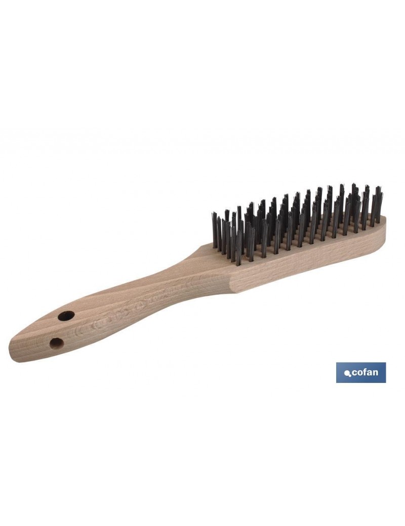 Cepillos de soldadura en acero con soporte de madera, con 2, 3, 4, 5 o 6 filas de alambres en los cepillos.