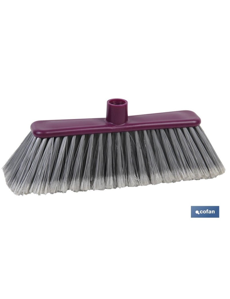 Cepillo de barrer resistente y de muy buena calidad, con una dureza de fibra intermedia. Es ideal para cualquier tipo de superficies interiores y exteriores. No plumado. Taco de color morado y fibra gris. Extra fibra 140 gr. Medidas: 32x8x13 cm
