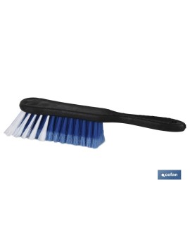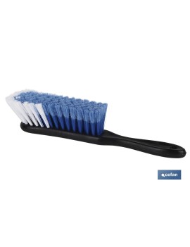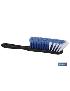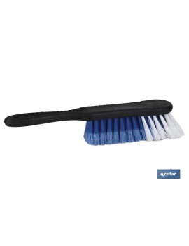 Cepillo multiusos modelo Nana con mango de polipropileno en color negro y fibras en PVC plumado en color blanco y azul. Medidas del Cepillo Multiusos: 30 x 6 x 5,5 cm.