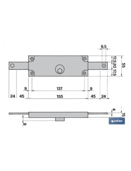 Cerraduras persianas de metal, Cuerpo en acero zincado. Palancas en acero zincado. Cilindro de laton. 3 llaves en laton niquelado. Modelos Central, lateral derecho y lateral izquierdo.
