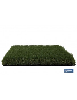Césped artificial bicolor verde esmeralda y oliva oscuro, fabricado en monofilamento de polietileno de fibra rizada y polipropileno con soporte en látex y polipropileno de fibra corta. Protección extrema contra los rayos UVA, fabricado con componentes químicos no peligrosos para personas. Válido para deporte previa autorización/certificación y para las zonas residenciales y de uso doméstico con niños y mayores. No es tóxico, y se puede reciclar cuando sea sustituido. Fácil limpieza. Con el comienzo del verano y el buen tiempo, se han disparado las ventas del césped artificial. Y es que es un complemento esencial para el paisajismo de terrazas, jardines, zonas de juego y piscinas, ya que cambia su estilismo creando un entorno más veraniego y agradable. Además, con el césped artificial reduces el consumo de agua y energía, entre muchas otras ventajas.