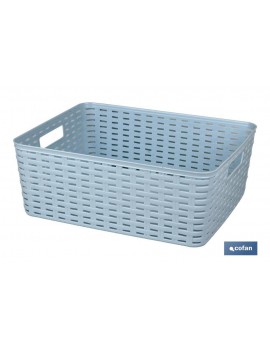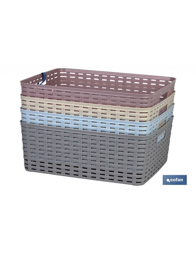Cesta decorativa multiusos. Disponible en colores pastel: azul cielo, beige, gris y rosa palo. Es ideal para tenerla en cualquier estancia de la casa. Con múltiples usos. Es la mejor opción para guardar y organizar tu hogar de la manera más sencilla y fácil. Resistente y duradera. Las medidas de las cestas son de 36 x 28 x 13,5 cm. Está fabricada con los mejores materiales de plástico polipropileno. Su diseño de ratán, hace que tenga un aspecto acogedor, natural y transpirable, a la vez que se combina con las propiedades de fácil cuidado del plástico. Además, sus dos asas hacen que sea fácil de mover, transportar y deslizar, según sea necesario.