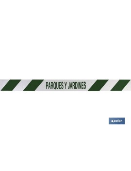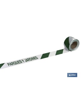 Cinta Balizamiento con texto JARDINERÍA de 80 milimetros de ancho y 100 metros de longitud.