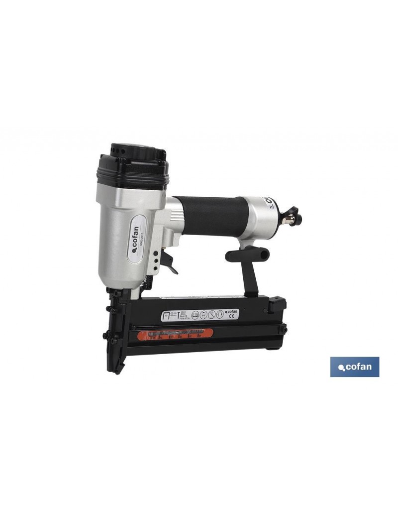 Clavadora Grapadora neumática para clavos (TG) de Ø 1x1,25 mm y longitud entre 15 y 50 mm. Además de Grapas modelo 90 y longitud entre 20 y 38mm. Muy práctica y útil en aplicaciones para bricolaje.