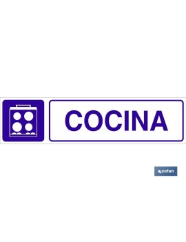 Señal informativa glasspack adhesiva con texto e imagen de cocina.