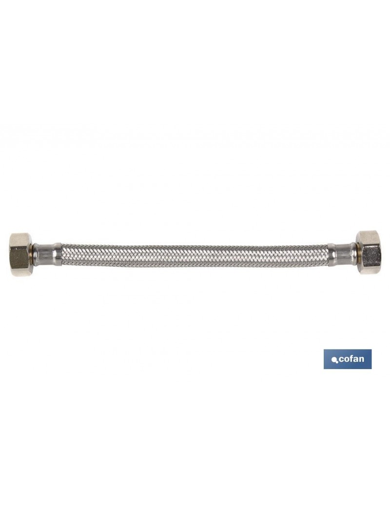 Conexiones flexibles Hembra/Hembra con longitudes desde 20 a 40 cm. Son aptas para grifo de cocina, ducha, bañera, fregadero de cocina... Están fabricadas para que cumplan con su función gracias a su conexión flexible que permite al usurario un manejo fácil de la alcachofa o el utensilio integrado. Gracias a las diferentes medidas que tenemos podemos cubrir cualquier necesidad posible.