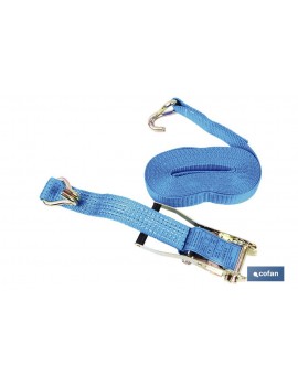 Con capacidad de carga desde 1.500 hasta 8.000 kg. Con cinta poliéster de grueso especial, de 8 metros de largo + 1 de la carraca. Ideal para su colocación en condiciones difíciles de apoyo o sin ayuda. Engancha en cualquier soporte.