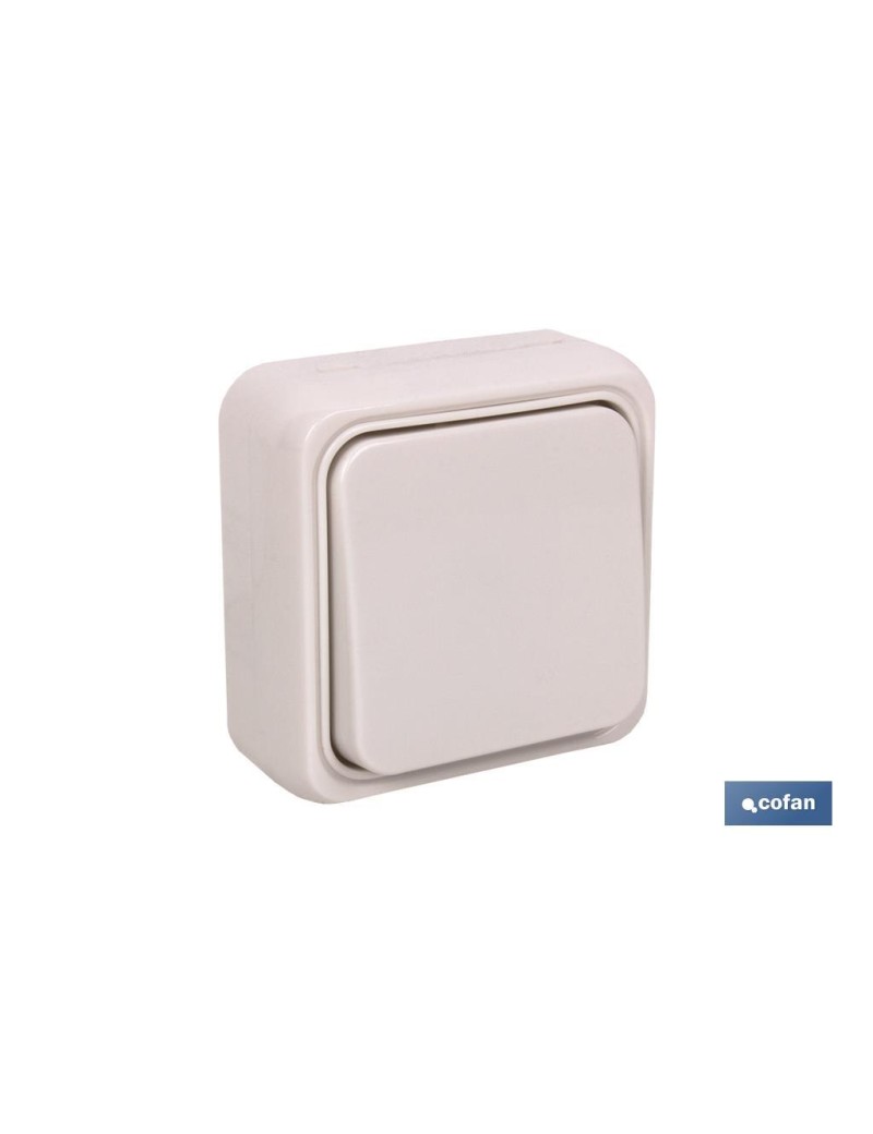 Conmutador de Superficie en color blanco. Características 10A 250V.