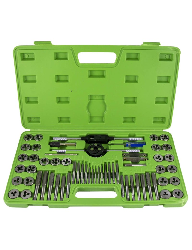 10 machos (métricos): M3x0.5, M4x0.7, M5x0.8, M6x1.0, M7x1.0, M8x1.25, M9x1.25, M10x1.0, M10x1.5, M12x1.75