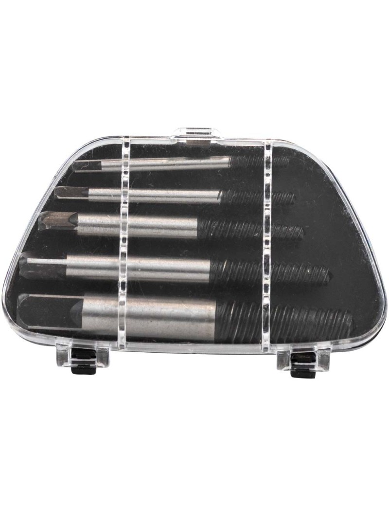 Fabricados a partir de un tratamiento térmico de acero al cromo molibdeno. Consigue una rápida eliminación con la ayuda de las hélices actuando como tornillo. Medidas: Nº1: 1/8" - 1/4" (M3-6) Nº2: 1/4" - 5/16"(M6-8) Nº3: 5/16" - 7/16" (M8-11) Nº4: 7/16" - 9/16" (M11-14) Nº5: 9/16" - 3/4" (M14-18)