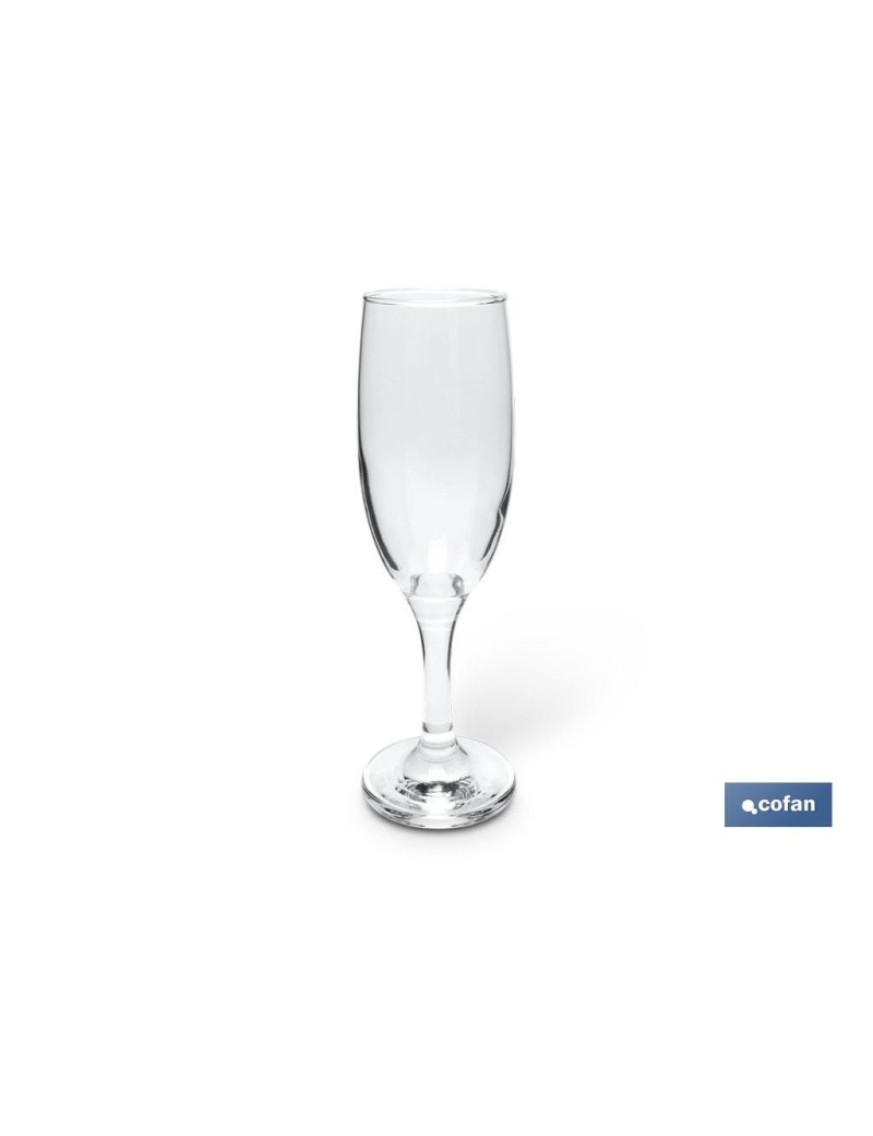Copa de Champagne modelo Sarbia con capacidad 190 cc. Fabricados en vidrio de gran resistencia y durabilidad. Envasado en pack de 6 unidades.