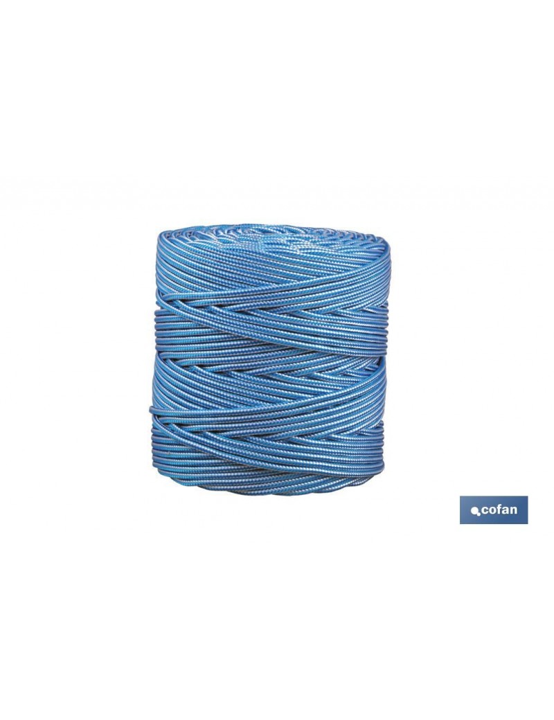 Cordón trenzado de color azul/blanco de 5mm de diámetro, adecuado para persianas. Cordón con polipropileno en el exterior y alma texturizada. Adecuado para persianas, toldos, redes, invernaderos, etc.