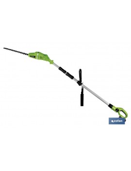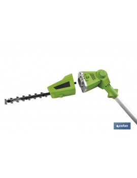 Cortasetos Eléctrico de largo alcance a batería. Cortasetos a batería telescópica de largo alcance con estructura de aluminio. Cabezal con 7 posiciones. 1400 cortes por minuto. Nº REI-RAEE de Cofan La Mancha 7038.