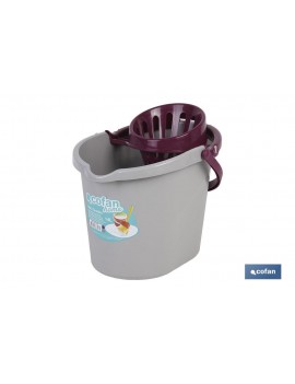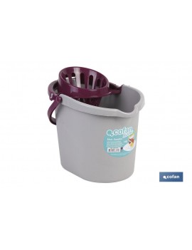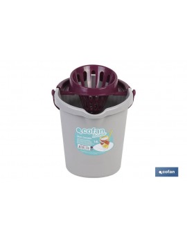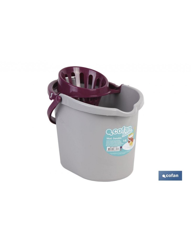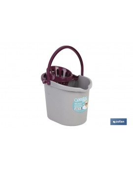Cubo fabricado en plástico duro, en color gris de alta calidad con escurridor en color morado. Posee un asa ergonómica de plástico resistente. Diseñado para llenar y vaciar el contenido con facilidad. Capacidad de hasta 14 litros. Medidas del cubo 37 x 28 x 28 cm. Medidas del escurridor 27 x 20 x 16 cm.