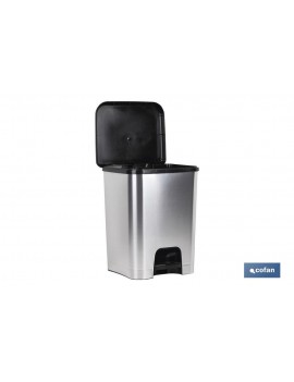 Cubo de basura con Pedal Class en color gris y negro. Está fabricado en plástico con efecto metalizado rígido y resistente. Cuenta con apertura abre fácil, de gran resistencia y dureza. Con capacidad de hasta 26 litros. Medidas del cubo de basura con pedal: 44 x 33 x 29,5 cm.
