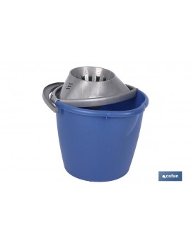 Cubo de plástico duro de alta calidad en color azul y el escurridor en color gris. Con capacidad para 13 litros. Modelo Amir. Cuenta con un escurridor único y especial. Posee un asa de plástico ergonómica para poder transportarlo. Sus medidas son de 38 x 29 x 37 cm y su peso de 500 g. Apto para limpiar todo tipo de suelos, ya que su forma ayuda a exprimir mejor la fregona.