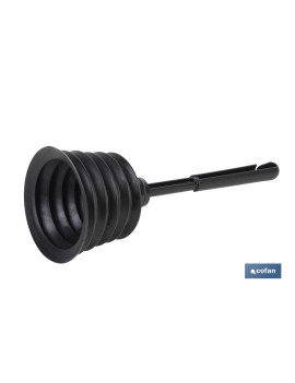Desatascador manual modelo Sultán con mango de polipropileno en color negro. Muy fácil de usar en atascos poco severos gracias a la presión por aire que logra mover y empujar la suciedad. Manual de uso: el desatascador se debe colocar sobre el desagüe y bombear, presionando hacia abajo y hacia arriba varias veces de manera consecutiva, para facilitar su desatasco. La rosca y el fuelle están fabricados en goma de caucho. Medida del desatascador: 12,5 x 37 cm