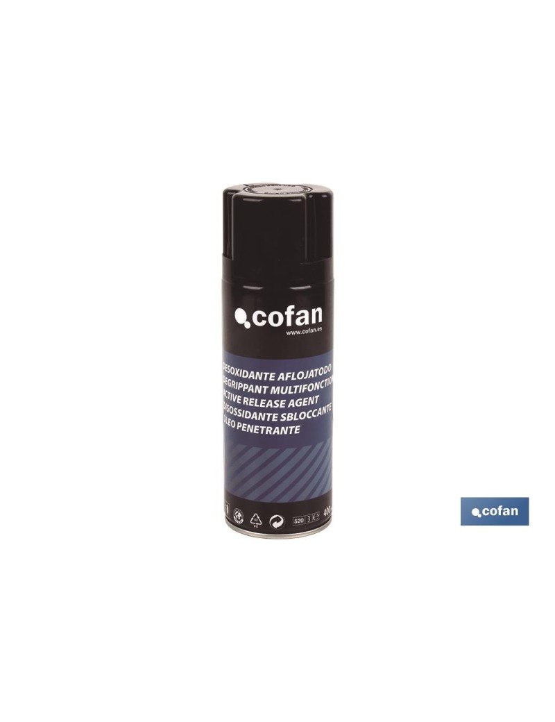 Aflojatodo Desoxidante con disponibilidad de 200 ml y 400ml de capacidad. Tiene una alta efectividad para aplicaciones diversas. Aflojatodo con MoS2 (disulfuro de molibdeno). Aerosol lubricante aflojatodo con propiedades desbloqueantes, alto poder desoxidante y efecto muy prolongado. El polvo micronizado de disulfuro de molibdeno, facilita su poder desbloqueante y deslizante. El polvo de disulfuro forma una capa lubricante con muy bajo coeficiente de fricción y una adherencia excelente, incluso en condiciones extremas de presión y temperatura. Previene procesos de oxidación.
