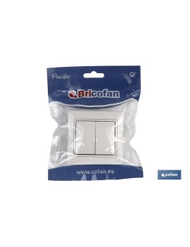 Doble Interruptor-Conmutador de Empotrar en color blanco compatible con todas las cajas de conexiones. Características 10A 250V.