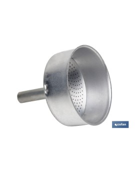 Recambio de embudo para la cafetera Baviera de la Marca Cofan Home. Para mejorar el sabor y cuidar la calidad del café, le recomendamos que cambie el embudo regularmente, es muy fácil y súper rápido. Son materiales de alta calidad y de fácil instalación. El mantenimiento es simple, lavar cuidadosamente con agua y jabón después de cada uso. Fabricado en Aluminio.