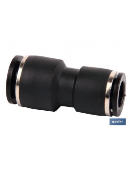 Racores enchufe rápido de reducción, totalmente en plastico, recuperables de conexión instantánea para tubos desde 4mm hasta 12mm de exterior. Adecuados para instalaciones de aire comprimido. Fácil visión del calibre de la tubería. Total seguridad y estanqueidad, incluso en condiciones límite.