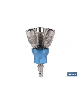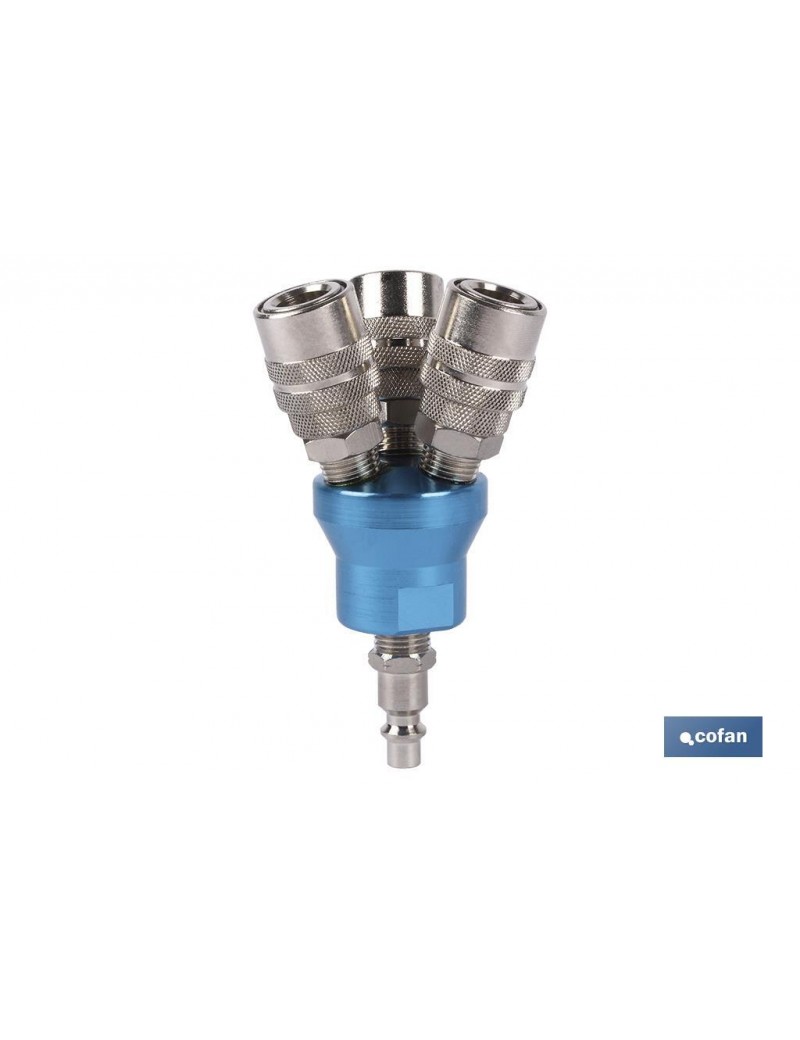 Enchufe rápido de 3 salidas en flor o en círculo. Recomendado en  instalaciones donde pueden enchufarse varias tuberías en la misma fuente de alimentación de aire y ocupar menos espacio en el enchufe.
