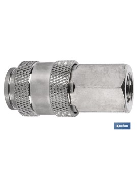 Enchufe rapido universal con rosca hembra de 1/4, 3/8 y 1/2. Compatible con todos los sistemas de  aire comprimido. Roscas invertidas no se necesita aplicar selladores.