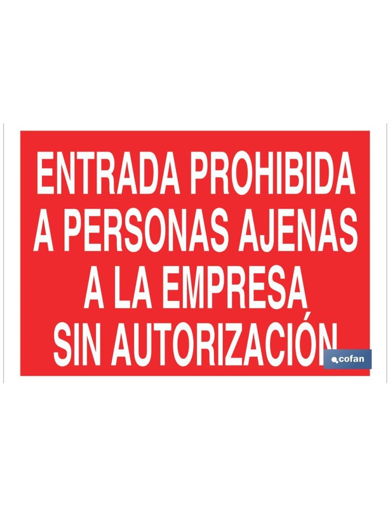 Señal de prohibición con texto, Entrada prohibida a personas ajenas a la empresa sin autorización. Tamaño y material a elegir.