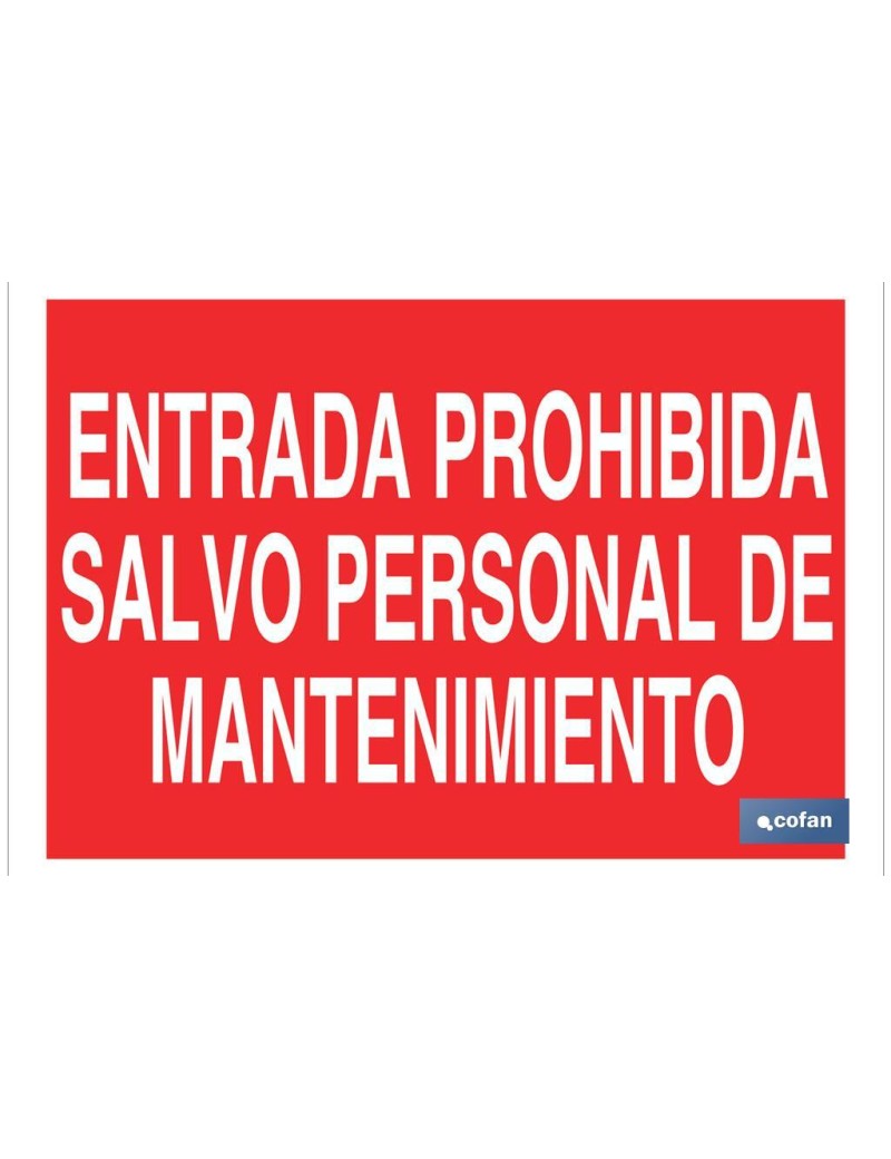 Señal de prohibición con texto Entrada prohibida salvo personal de mantenimiento. Tamaño a elegir.