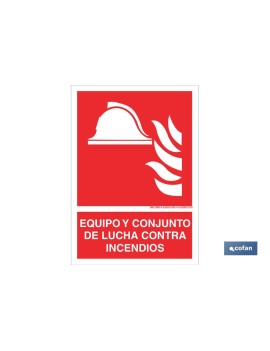 Señal de socorro Equipo y conjunto de lucha contra incendios. Pictograma + Texto. Tamaño y material a elegir (luminiscente y adhesivo).