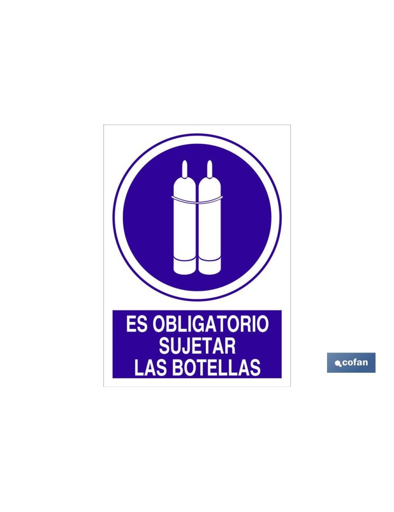Señal de obligación de sujetar las botellas. Tamaño a elegir.