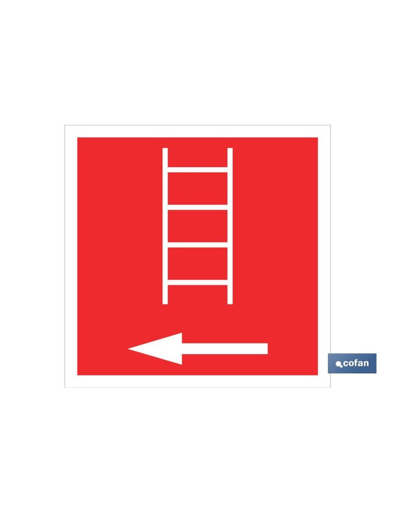 Señal luminiscente de socorro Escalera de incendios dirección izquierda. Tamaño a elegir.