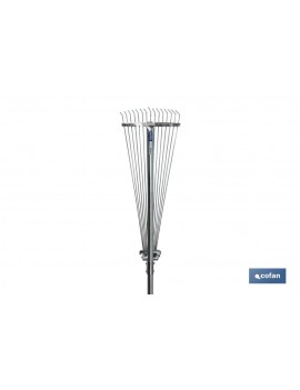 Rastrillo metálico para jardín con 15 dientes. Escoba de abanico para rastrificar flores, hojas, hojas, malas hierbas y cortes de hierba en caminos y superficies de césped, especialmente adecuada para grandes áreas de aplicación. Este rastrillo es de gran durabilidad gracias a su escoba de alta calidad, escoba ancha con púas extremadamente resistentes. Rastrillo de aluminio endurecido y perfil único de eje para reducir el peso sin perder fuerza, fácil de trabajar sin gran esfuerzo.