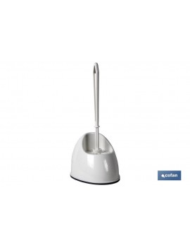 Escobillero de baño para suelo. Compuesto por un portaescobillas de suelo y escobilla con mango para la limpieza del inodoro. La escobilla o cepillo de baño WC es de gran tamaño, diseñado para la limpieza profunda de bordes y otros lugares de difícil acceso. Es inalterable, higiénico y muy fácil de limpiar.El mango y el vaso están fabricados en polipropileno y goma antideslizante y el cepillo cuenta con fibras de PVC. Escobillero para baño disponibles en color blanco.Las medidas del producto son de 18 x 15 x 37,5 cm.