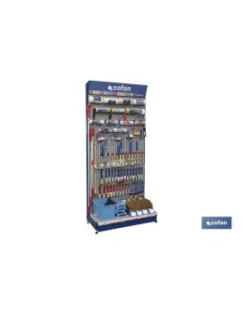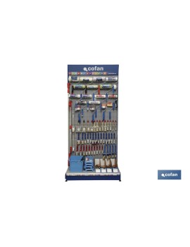Expositor completo con todos los accesorios de Pintura Cofan que puedes llegar a necesitar. Reúne todos los productos necesarios en un expositor muy visual.