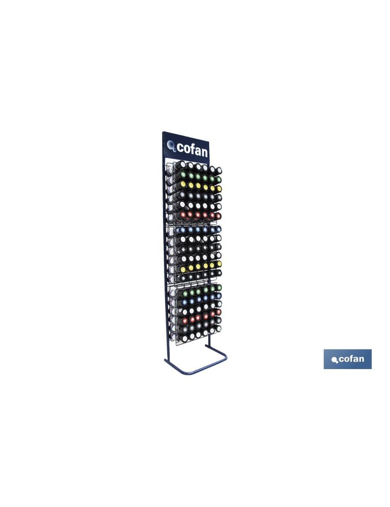 Expositor para 126 botes de 400 ml de capacidad. El expositor no incluye el materia, solo el expositor. Medidas del expositor 500 x 1960 mm.