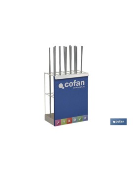 Expositor para Varillas Roscada. Cuenta con 12 Compartimentos y sus medidas son de 653 x 490 x 290 mm. No incluye material, solo el expositor.