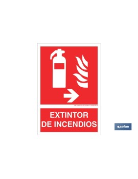 Señal luminiscente de socorro Extintor de incendios dirección derecha. Tamaño a elegir.