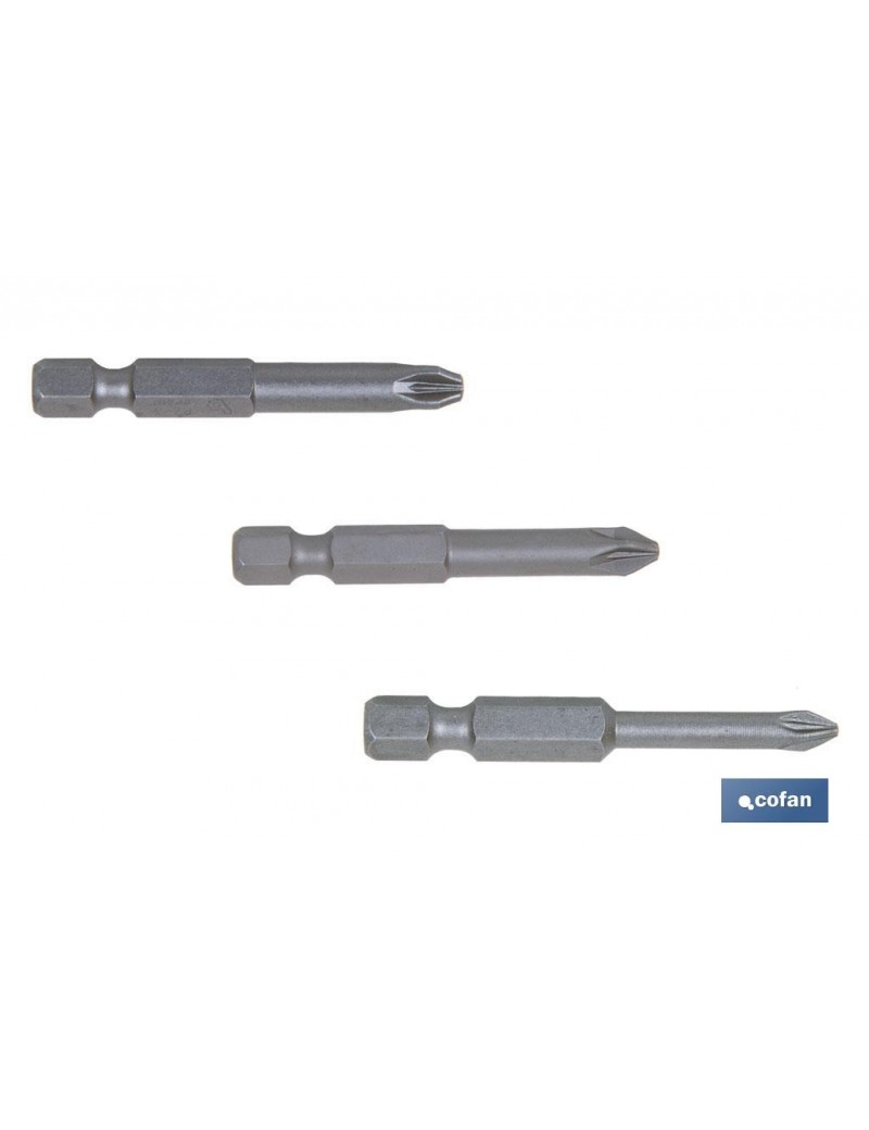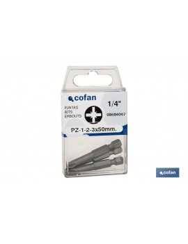 Blíster de tres puntas pozidrive de atornillar en versión larga (50mm) PZ-1, 2 y 3