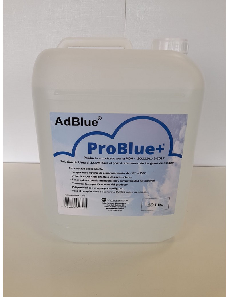 ADBLUE PROBLUE+ 10 LITROS, PRODUCTOR AUTORIZADO POR LA VDA-ISO22241-3-2017, SOLUCION DE UREA AL 32,5 % PARA EL POST TRATAMIENTO DE LOS GASES DE ESCAPE