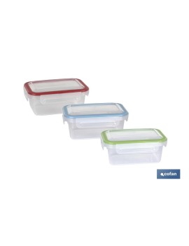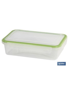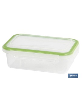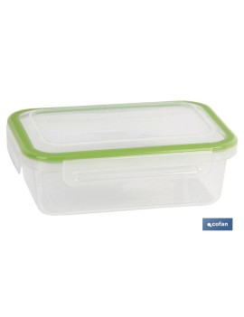 Fiambrera rectangular modelo Yuba disponible en tres colores: azul, rojo y verde con base transparente para ver su contenido. Con junta bi-material, haciéndola totalmente hermética, sin posibilidad de derrames. Apta para microondas, congelador y lavavajillas. Es apilable, higiénica y duradera. Tenemos tres tipos distintos de capacidad: 0,5 L, 1 L, 1,4 L.