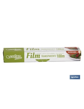 Film transparente para uso doméstico con estuche de sierra de corte. Medidas disponible de 50 y 100 metros, ancho de 30 cm. Protege y conserva el sabor y la frescura de los alimentos en el frigorífico o congelador, evita la pérdida de humedad, y la transmisión de olores. Es muy práctico para poner en todo tipo de recipientes. Lámina autoadherente que permite recuperar la flexibilidad y resistencia.