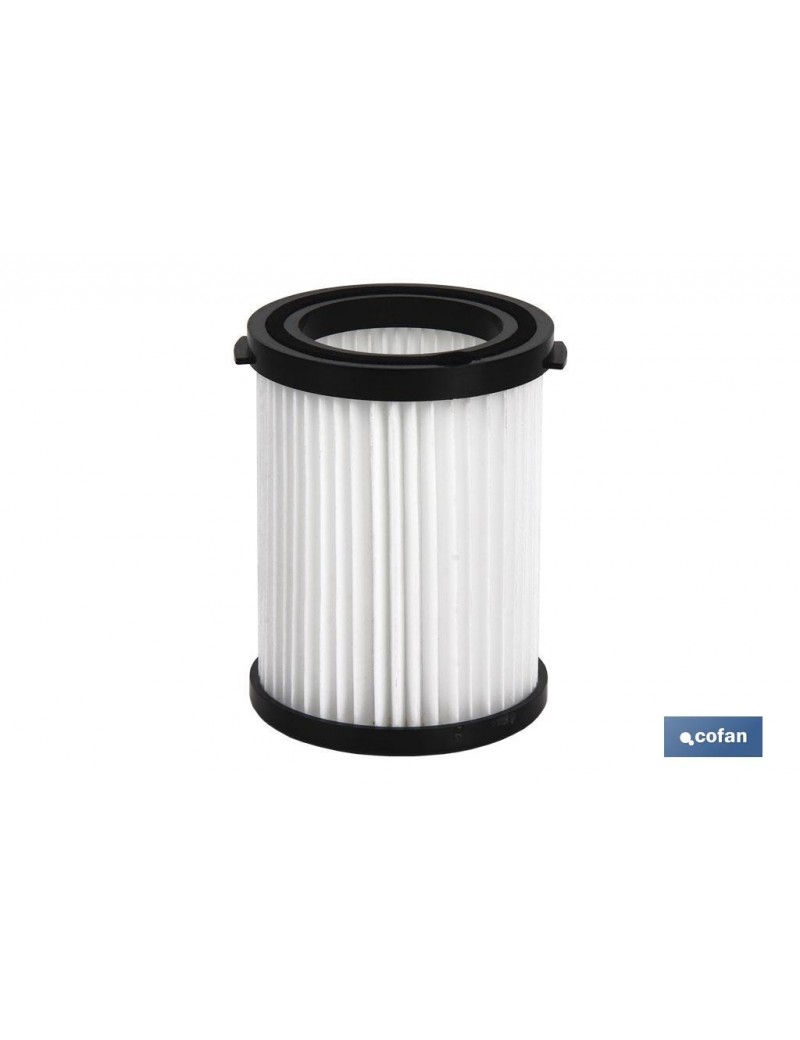 Filtro para aspirador a batería, para la referencia Cofan 50003207. Se recomienda lavar los filtros para mantener su rendimiento y cambiarlo cada 3 meses. Es un filtro muy fácil de extraer y de limpiar.