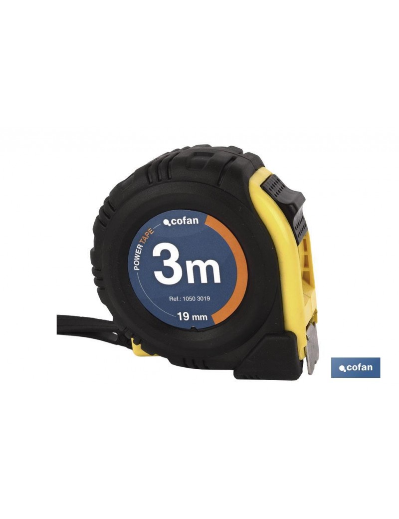 Flexómetros recubiertos de goma con medidas de 3, 5 y 8 metros de longitud.