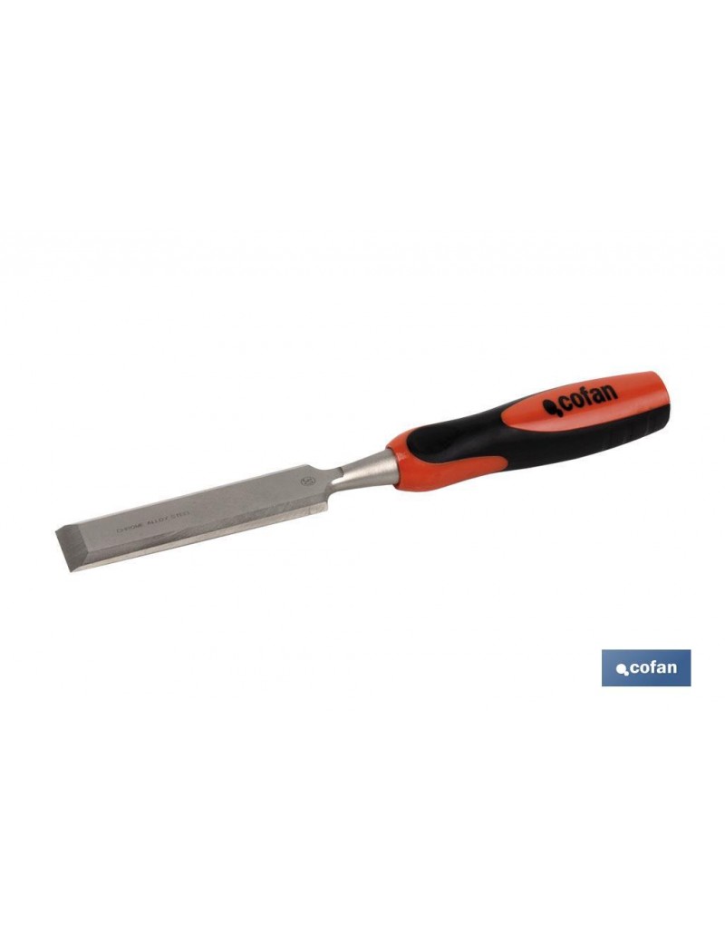 Formón con mango bimaterial y cuchilla cromada reafilable. Medidas desde 6mm hasta 60mm