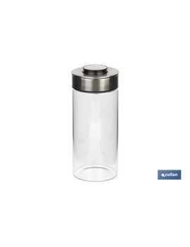 Frascos de vidrio transparente para almacenamiento de alimentos. Fabricados en vidrio borosilicato, acero inoxidable, ABS y silicona. Con tapa hermética de acero inoxidable que funciona a presión. Disponibles en los siguientes tamaños: 1900 ml, 1500 ml, 1100 ml y 550 ml. Todos ellos con un diámetro de 10,2 cm. Productos ligeros y fáciles de usar. Libres de agentes contaminantes y respetuosos con el medio ambiente. Aptos para uso alimentario.