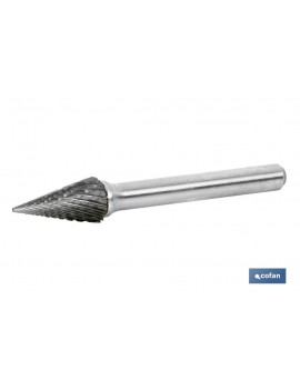 Fresa rotativa punta cónica de metal duro y dentado cruzado, con punta en forma cónica y cabeza de 3 a 12 mm de diámetro