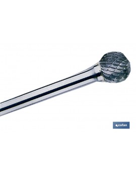Fresa rotativa punta esférica de metal duro y dentado cruzado, con punta esférica  y cabeza de 3 a 19 mm de diámetro