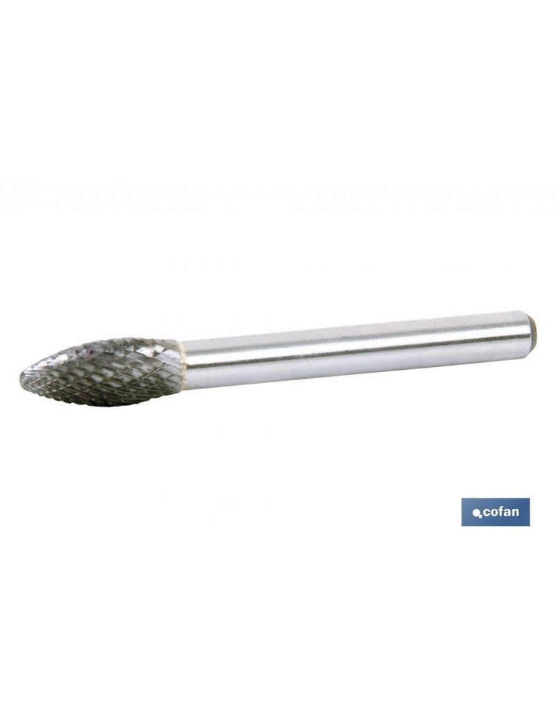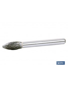 Fresa rotativa punta llama de metal duro y dentado cruzado, con punta en forma de llama y cabeza de 3 a 12 mm de diámetro
