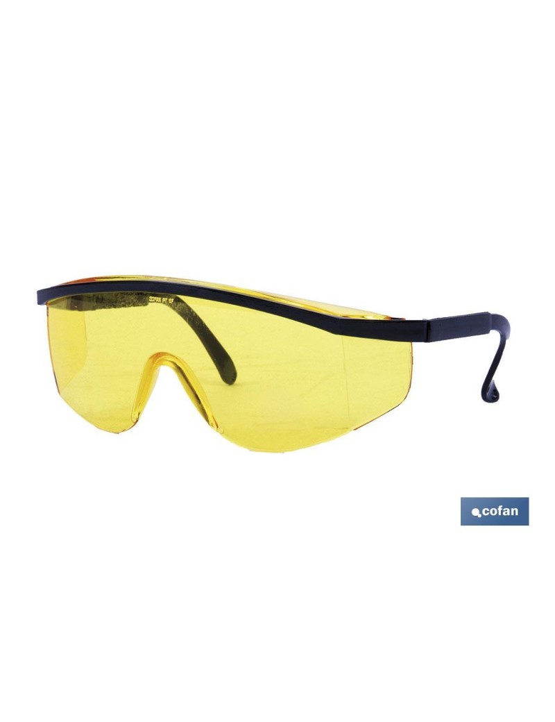 Gafas de protección en tono amarillo ideales contra impacto, confortables y ligeras, lentes ahumadas con tratamiento antirrayaduras, protección UV. EN 166:2001